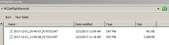 - Open the FlightRecords/MCDatFlightRecords folder on your computer where you'll see the .DAT files.